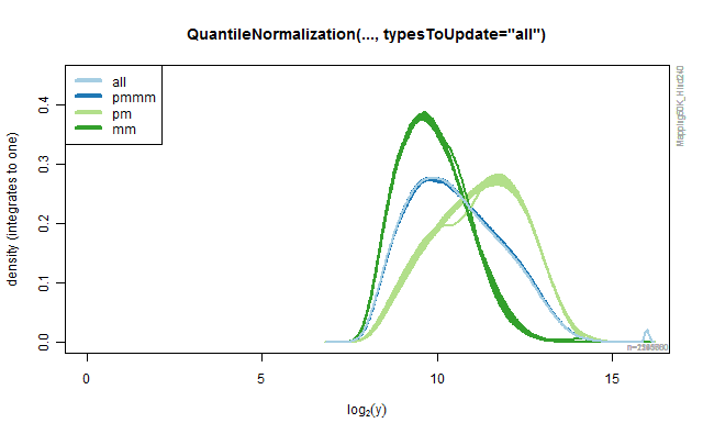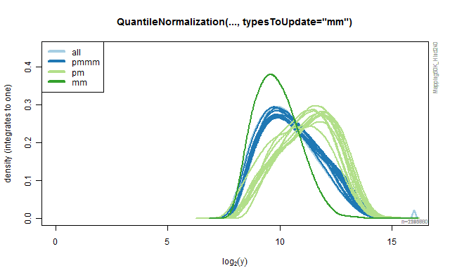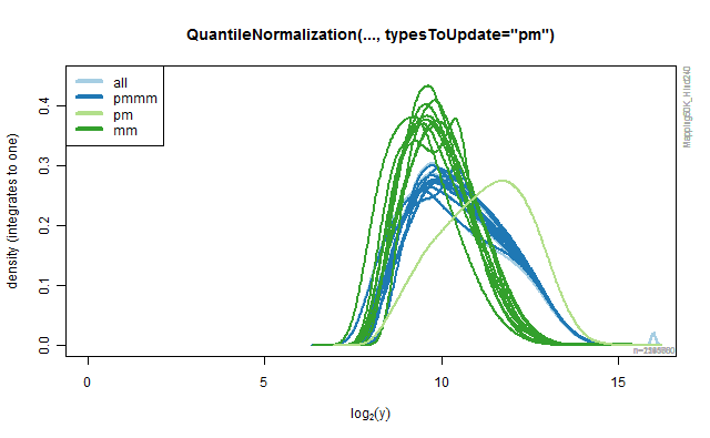 title(sprintf("QuantileNormalization(..., typesToUpdate=\"%s\")", type))